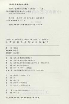 图书简介 | | 本书共设计了七个章节:第一章为声乐艺术概述,包括了对中西方声乐发展的探究;第二章为声乐艺术风格的论述,从美声唱法、民族唱法、通俗唱法、声乐艺术的创新几个方面进行分析;第三章论述了中国民族声乐艺术;第四章论述了中西方艺术歌曲的对比融合;第五章论述了中西方歌剧的对比融合;第六章探讨了声乐美学的内容,以探究声乐美学发展方向;第七章论述了中西方声乐教育的基本理论。 |
