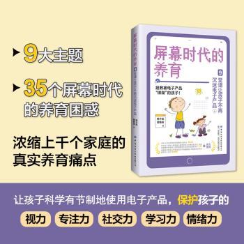 图书简介 | | 本书融合作者近十年的办学经验,并结合近千个实际案例,介绍了如何培养屏幕下的专注力、社交力、学习力、如何建立屏幕下的安全意识、如何树立价值观、如何培养孩子的习惯养成、如何在屏幕时代下处理隔代养育关系及屏幕时代父母的成长等9方面内容,探究孩子内心深处的声音,总结出家长们亲测有效的方法,帮助孩子和家长更好地适应屏幕时代下的学习和生活。 |
