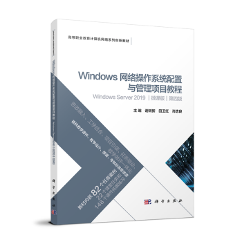 图书简介 | | 本书以项目为单元,以应用为主线,将理论知识融入实践项目中。全书根据网络工程实际工作过程所需要的知识和技能,以服务器配置与管理的典型项目为载体,组织了基于Windows Server 2019的操作系统安装与基本环境配置、配置与管理本地用户与组、配置与管理磁盘、配置与管理文件系统、配置与管理DHCP服务器、配置与管理DNS服务器、配置与管理Web服务器、配置与管理FTP服务器、配置与管理活动目录服务、配置与管理组策略和配置与管理路由访问服务器共11个项目。 |