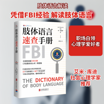 图书简介 | | 本书以大量例证明确告诉我们,每个一闪而过的念头、被隐藏起来的心声、暂未明确的感受,都能通过肢体语言表露无遗。与前作相比,本书具有以下特点: 更全:收录了多达19个身体部位的407个常见肢体动作。 更准:结合25年FBI实际经验,乔·纳瓦罗对每个动作进行详尽描述与分析,帮你准确捕捉肢体信号,理解其背后的心理活动。 更方便:创新性地采用了字典式查阅法,查询迅速。 无论是家庭、职场、社交或亲密关系,本书都可以帮你及时洞察他人想法,看透真实意图,知晓对方感受,让你应对得当,游刃有余。 |