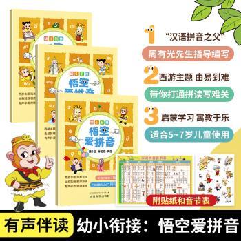 图书简介 | 拼音,即汉语拼音,是一种辅助汉字读音的工具。它是一年级语文教学的重点,也是一年级小学生学习的难点。学好拼音可以帮助孩子认读汉字,提高自主识字的能力,如果拼音学得不好,识字就会变得困难,影响今后的语文学习。《幼小衔接:悟空爱拼音》这套书就是为了帮助幼儿园大班的孩子打下拼音学习的基础,顺利实现幼小衔接。《幼小衔接:悟空爱拼音》这套书的编撰依据《汉语拼音方案》,计划收录23个声母、24个韵母和16个整体认读音节。 |