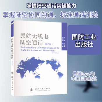 图书简介 | | 本书包括9个单元,共21课,内容贯穿实际空中管制与飞行工作的各方面,以国际民航组织和国内的有关文件和资料为背景,以国内外最新使用的各种常规通话用语和非正常情况下的紧急处置通话用语为主要内容,通过大量系统性的句型、对话、术语的学习以及口头和书面的训练,以达到使学员熟练掌握和运用无线电陆空通话用语的目的。 |