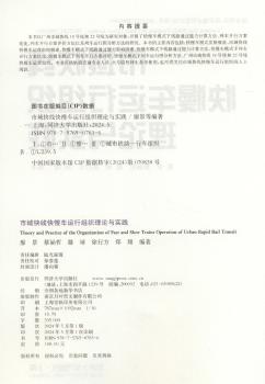 图书简介 | | 本书的主要内容包括:快慢车模式发展概况、市域快线开行方案优化、快慢车模式下列车开行方案评价、快慢车模式下列车运行图分析方法、广州市域快线18号线和22号线快慢车运营组织。具体内容包括:快慢车模式的发展背景;快慢车模式的概念;快慢车的开行条件等。 |