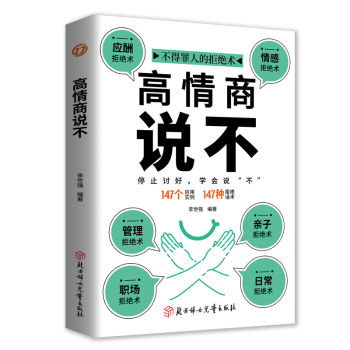 图书简介 | | 本书主要帮助那些不好意思拒绝或者不懂得拒绝的人,让他们学会放下自己心中的负担,能大胆地应用高情商话语说“不”。本书共八章内容,主要阐述要学会拒绝的原因,如何拒绝的技巧、幽默式拒绝的技巧、职场说“不”的技巧、应对客户说“不”的技巧、在爱情和育儿中说“不”的技巧等方面出发,引导读者高情商地拒绝别人,学会赞美和沟通,不再懦弱和自卑,做生活的主人!书中主要设计了需要说不的场景,一般的拒绝,高情商拒绝以及分析两种拒绝的不同,旨在让读者能够更为简洁明了地理解如何高情商说“不”。 |