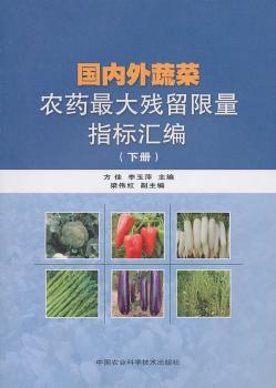 图书简介 | | 本书为下册,收集芦笋、西兰花、茄子、辣椒、萝卜、豌豆6种作物截至2010年4月底的农药最大残留限量指标信息。 |