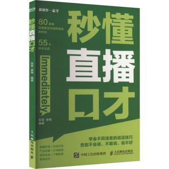 图书简介 | 全书共7章,为直播开场、观众互动、产品讲解、下播等高频场景提供了实用话术示例和解析。本书以普通话术与进阶话术的对比式结构,详细介绍了如何使用进阶话术增强直播效果。内容包括:说好开场白,让直播间人气快速上升、掌握聊天技巧,让用户舍不得走;生动介绍产品,让用户心动下单、提升话语说服力,让用户爽快下单等。 |