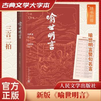 图书简介 | | 本书收录40篇,多为宋元旧作话本,少数为明朝拟话本,有些是明人对宋元旧作的润色加工。小说多取材于现实生活,主题涵盖爱情、婚姻、朋友情义等,展现了当时的社会生活百态。本书是许政扬先生在本世纪五十年代后期校注的,至今流传半个多世纪,被学界公认为定本。此次新版《喻世明言》大字本,以16开大本、大字疏朗的版式呈现,护眼悦目,阅读舒适。同时随时附赠最新制作的《<喻世明言>警句名言》,遴选小说中传诵数百年的警句名言,加以精炼的赏析,帮助读者迅速掌握其背景与思想内涵,更好地理解欣赏原著。 |