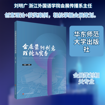 图书简介 | | 本书定位是系统讲授中国会展理论创新、会展实践探索、会展创意理论、会展策划原理、学术成果写作、案例分析研究、云展设计方法、会展翻译讲解、会展礼仪理论和参展创意理论等理论性和实践性高度统一的教材,是打通了会展创新链、产业链和人才链的经典会展教材,是从事会展策划创意实务工作的行动指南。本教材编写团队阵容强大,教材内容密切追踪国际会展业最新发展前沿趋势,整理了近数十件优秀案例,反映了我国会展产教融合的最新进展。 |