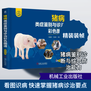 图书简介 | | 本书以“看图识病、类症鉴别、综合防治”为目的,从生产实际和临床诊治需要出发,结合编者多年的临床教学和诊疗经验进行介绍,内容包括病毒病、细菌病、寄生虫病和普通病的鉴别诊断与防治,还特别收集了非洲猪瘟典型病变图片,附录详细列出了引起猪腹泻的常见疾病,引起猪呼吸困难的常见疾病,猪泌尿生殖系统疾病,猪神经、运动障碍常见疾病,猪皮肤病,以及常见猪中毒病的鉴别诊断要点。 |