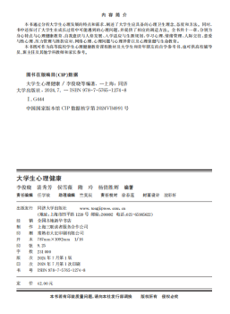 图书简介 | | 本书通过分析大学生心理发展的特点和需求,阐述了大学生应具备的心理卫生理念、态度和方法。同时,书中还探讨了大学生在成长过程中可能遇到的心理问题,并提供了相应的调适方法。全书共十一章,分别为头身心特点与心理健康教育、自我意识与人格发展、入学适应与生涯规划、学习心理、情绪管理、人际交往、恋爱与性心理、压力管理与挫折应对、网络心理、心理问题与心理异常以及心理保健与生命教育。 |