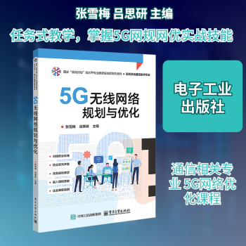 图书简介 | | 本书共有5个模块。模块1为认识5G网络架构;模块2为建立5G通信链路,呈现了手机从开机入网到可以打电话、上网和基站信令交互的过程;模块3为规划5G无线网络,结合工程实际进行区域网络覆盖估算和容量规划,确定区域内基站数量,完成基站勘察;模块4为分析5G网优实例,针对常见的网络优化问题进行分析并给出解决方案;模块5为实践5G网优项目,呈现了单站验证和5G网格(簇)优化实际工程项目实施的全过程。 |
