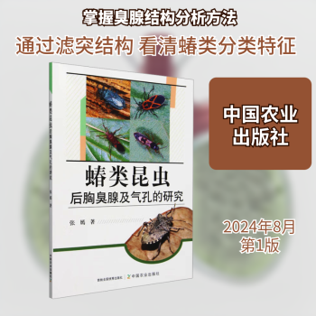 图书简介 | | 蝽的后胸气孔开口位于中、后胸侧板节间缝处间,是气管系统在胸部对外的开口,呼吸时氧气可以从此处进入昆虫体内。后胸气孔处的臭腺蒸发域常常会出现特化,形成具较高形态多样性的滤突。滤突是后胸气孔的重要组成结构。本文除了总结蝽类昆虫臭腺传输系统的结构外,还重点对异翅亚目蝽次目昆虫成虫中后胸节间缝处后胸气孔的开口和由臭腺外部传输系统的蒸发域特化形成的滤突装置进行了系统的研究。选取的蝽次目研究对象共108种,涉及长蝽总科14科77属83种,蝽总科6科14种,红蝽总科2科2种,缘蝽总科3科6种,扁蝽总科1科2种,南蝽总科1科1种。通过观察后胸气孔开口处由臭腺蒸发域特化形成的气孔滤突的结构发现,蝽次目后胸气孔的滤突具有相当高的多样性,尤其在长蝽总科体现得更为鲜明。后胸气孔的开口、前后壁边缘上的滤突特征及它们的组合特征存在于一些特定的研究类群,这些滤突在属级阶元体现出分类学价值。 |