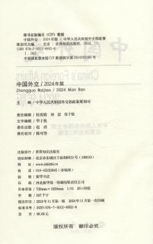 图书简介 | | 《中国外交》(白皮书)由外交部政策规划司主编、外交部地区业务司撰稿。《中国外交》(2024年版中文版)深入分析2023年国际形势演变的发展动向,全面总结中国外交的丰硕成果,为读者了解中国外交提供了系统、权威参考,是各界了解中国外交政策的重要窗口,也为中国与世界的对话沟通架起了桥梁。本书旨在准确、全面地阐述中国的外交政策和中国对国际形势的最新看法,系统、完整地介绍中国上年度对外关系及外交实践,增进国内外人士对中国外交工作的了解。 |