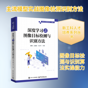 图书简介 | | 本书主要介绍基于深度学习的图像目标检测与识别方法,包括检测与识别过程所涉及的图像增强、图像分割、目标定位、目标检测与识别等。主要内容有,基于U-Net的图像去雾算法、基于GAN的图像增强算法、基于ESRGAN的图像超分辨率重建算法、基于嵌套U-Net的图像目标分割算法、基于迁移学习的图像目标分割算法、基于Faster-RCNN的图像目标定位与识别算法、基于YOLOv4的视频图像目标实时定位与识别算法、基于RetinaNet的图像密集目标检测算法、基于LSTM的视频图像目标实时检测算法、基于改进YOLOv4的嵌入式目标检测算法等。 |