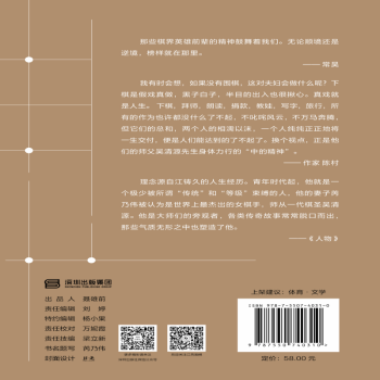 图书简介 | 本书内容主要分为两部分。第一部分以全世界唯一一对围棋九段夫妇江铸久和芮乃伟与他们的师傅“棋圣”吴清源之间的点滴为切入口,回顾吴清源从出生、丧父、东渡日本,到扬名日本棋界、开创“新布局”、在十五年间将日本超棋士悉数打到降级的动荡而充实的一生,追忆其风采。另一部分,讲述江铸久及芮乃伟夫妇与其棋手生涯中遇到的,如林海峰、曹薰铉等国内外围棋大师之间以棋会友的故事。 |