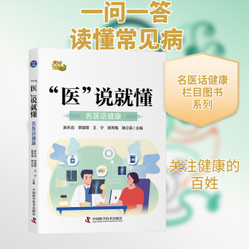 图书简介 | | 本书分为心脑血管要警惕、科学调理防“三高”、呼吸之道学问大、“健康之源”助消化、互为表里“肝”与“胆”、泌尿系统很重要、保护筋骨助健康、各司其职说五官等15章,用“一问一答”的科普性语言,打破医学知识晦涩难懂的壁垒,把常见健康问题给出“医说”的解释,让您一读“就懂”,做您身边的健康“工具书”。 |
