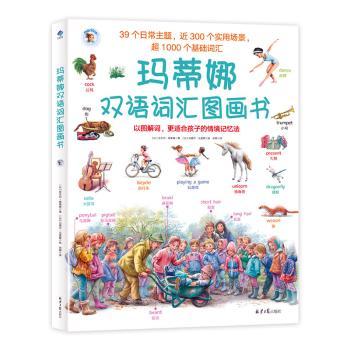 图书简介 | | 本书为中英双语对照,全书涉及39个主题,近1000个孩子感兴趣的基础词汇,内容涵盖生活的方方面面,包括认知、自然、食物、动物等,不仅可以有效提升孩子的词汇量,还能培养双语认知能力。书中每个主题都设置了一个简单的开放性游戏或者问题,文内还有五个故事页面穿插其间,引导孩子将词汇组合成句子,再将句子连成小故事,进而掌握写作基础能力。最后书中还附有中英词汇对照表,能快速提升孩子的双语词汇积累。书中的画面全部来自畅销世界的经典儿童文学作品——《玛蒂娜故事书》,让孩子在优美的图画中学习词汇,认识世界。 |