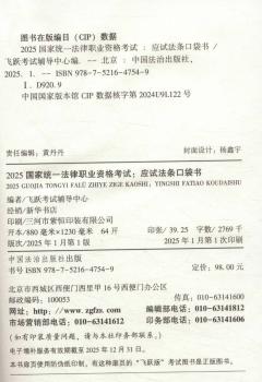图书简介 | | 本书包括了宪法、行政法、经济法、环境资源法、劳动社保法、刑法、刑事诉讼法、民法、知识产权法、商法、民事诉讼法与仲裁制度、国际法、司法制度与法律职业道德等学科。本书秉承飞跃考试的创作理念,保持编排科学、实用新颖、易于携带等特点。本书法条标注关键词,简化考生记忆,标注高频考点和重点难点法条,并加以讲解说明。收录法律法规内容全面,本书以考试大纲各科所列法律法规司法解释目录为基础,收录范围涵盖全面,并实行动态增补。在装帧设计上采用小开本,便于考生携带,制作精良美观。 |