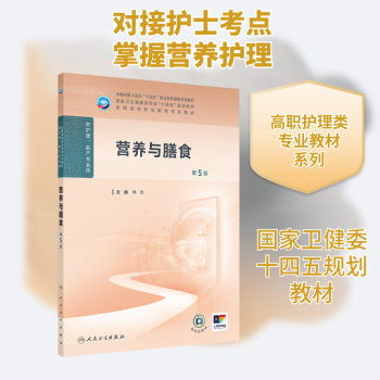 图书简介 | | 此为国家卫生健康委员会“十四五”高等职业教育专科护理类专业规划教材之一。按照护士岗位的营养护理任务,基于认知·实践·再认知·再实践的逻辑规律,对接执业护士考试考点、1+X证书考核点,以及注册营养师水平评价考点,将教学内容重新整合为六大模块,包括营养护理、膳食营养基础、合理膳食、营养调查与评估、特殊人群营养、常见疾病营养护理与预防。在各章节相应位置设置二维码进行扫码应用;每章设计知识链接,引导学生走进、热爱、传承中华饮食文化,培养科学严谨、服务健康的职业精神。 |