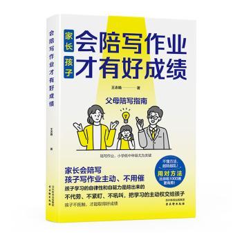 图书简介 | | 本书摈弃了家长在陪孩子写作业时遵循的那种“我教你学”的传统模式,从孩子的心理活动入手,全面剖析了孩子不愿写作业、写作业效率低等状况产生的原因,同时也分析了多数家长在陪孩子写作业时陷入的误区和所遇的难题,如没有时间、没有精力、方法不对等等。 |