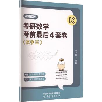 图书简介 | | 本书包括4套全国硕士研究生招生考试考前数学三试卷,每套试卷在习题难度系数方面会更接近考研真题难度,有助于帮助考生临考热身,熟悉真题命题方式,有利于考生在冲刺复习阶段更灵活地把握考点、掌握题型、查漏补缺。 |