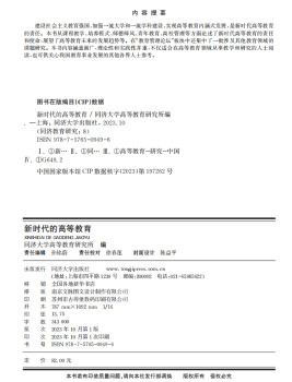图书简介 | | 建设社会主义教育强国,加强一流大学和一流学科建设,实现高等教育内涵式发展,是新时代高等教育的责任。本书从课程教学、培养模式、师德师风、青年教育、高校管理等方面论述了新时代大学的责任和使命,展望了大学教育未来的发展趋势等。在“教育管理论坛”栏目中还集中了一批涉及到其他教育领域的课题研究。 |