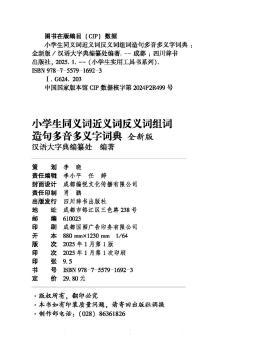 图书简介 | | “小学生实用工具书系列”为我社新开发的小开本工具书,便于携带和随时查用。本书特别突出了实用性特色:一、功能完备。以字带词,提供了语文学习中常见词语的注音、同义词、近义词、反义词、造句及组词等功能项。二、释义准确,通俗易懂。本书特别注意释义用语的通俗性,尽可能用浅显明白的语言解释。三、举例丰富,简单明了。内容多样,语境完整,可帮助小学生准确理解同义词、近义词、反义词的词义和用法,提高学生的造句能力及其他语言运用能力。四、全彩印刷,配有丰富的插图,版式活泼可爱,适合小学生使用。 |
