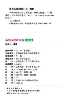 图书简介 | | 收录汉语成语5000余条,设置有注音、释义、用法、例句、近义词、反义词、又作、注意、辨析、成语歇后语、成语故事、成语接龙、摘录卡、逐字索引14项功能,内容覆盖小学生1-6年级的知识范围。书中共收录有成语故事50个,针对易混、易错的成语还附有详细的辨析,共计100余条。用法栏目中标注了成语的感情色彩及使用方法,方便小读者们使用。同时书中的摘录卡及成语接龙栏目还增加了本书的趣味性。本书采用全彩印刷,内含丰富的彩色插图,图文并茂,风格活泼,让小读者们享受快乐的学习时光。 |