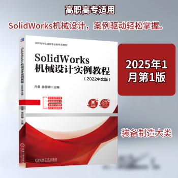 图书简介 | | 本书共11章,主要内容包括:SolidWorks 2022基础知识、二维草图的设计、盘类零件的设计、轴类零件的设计、套类零件的设计、盖类零件的设计、箱体类零件的设计、曲线曲面的设计、装配体的设计、工程图的设计、运动仿真的设计。 |
