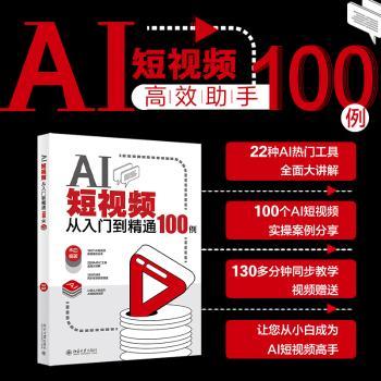 图书简介 | | 本书内容分为工具软件和实战案例两条线进行讲解。一是工具软件线:书中介绍了20种热门的AI工具,包括Kimi、文心一言、智谱清言、秘塔写作猫、ChatGPT、剪映App、豆包App、通义App、美图秀秀App、文心一格、Dreamina、造梦日记、Midjourney、必剪App、不咕剪辑、一帧秒创、Pika、Runway、腾讯智影和剪映电脑版,读者学习本书后,可以掌握多种工具的使用技巧。二是实战案例线:全书共12章内容,讲解了100个AI短视频制作的相关案例,包括文案素材准备、图片素材准备、视频素材准备,以及使用文案、图片、模板、视频、数字人制作AI短视频的方法,还介绍了AI短视频的视频画面剪辑处理、音频内容剪辑处理,以及热门卡点短视频的制作和电商带货短视频的制作等。 |