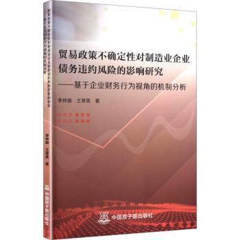 图书简介 | | 本书共九章,第一章方法、研究创新点三部分内容。第二章的主要内容为理论基础与文献综述。第三章介绍了贸易政策不确定性影响企业债务违约风险的机理分析。第四章介绍了贸易政策不确定性对企业债务违约风险的影响研究。第五章介绍了企业融资行为视角下贸易政策不确定性对债务违约风险影响。第六章为企业现金持有行为视角下贸易政策不确定性对债务违约风险影响。第七章为企业财务分配行为视角下贸易政策不确定性对债务违约风险影响。第八章为企业投资行为视角下贸易政策不确定性对债务违约风险影响。第九章的主要内容为结论与政策建议。 |