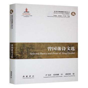 图书简介 | 本书以时间先后为序,收录了近代洋务运动的代表人物曾国藩的经典诗文。在精选曾国藩的诗词古文的同时,也选录了若干篇他的奏折、家书代表作,以便让国内外读者更好认识这位被誉为“最后一个集中国传统文化大成”的曾文正公。上述作品译成英文,以汉英对照方式出版,彰显其蕴涵的湖湘文化精神特质和经世智慧。 |