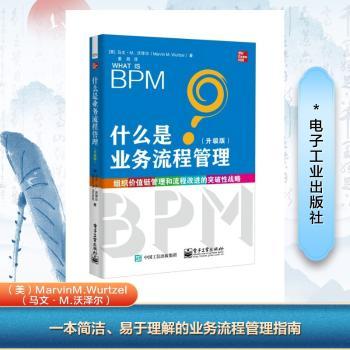 图书简介 | | 本书是一本系统、简洁、易读的业务流程管理(BPM)指南,全面介绍了BPM相关的重要概念、方法、工具和技术。它让你深刻理解,为什么BPM能够支撑组织战略,让成功的企业紧密地与价值链融为一体,保持企业高绩效和不断成长,并最终成为激活组织有机生命的关键脉络。本书最大的特点是,用简短的篇幅和简练的语言,系统地展现出组织运作和企业治理的透视图景。 |
