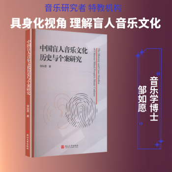 图书简介 | | 本书深入研究了中国盲人音乐文化中的一些个案,探讨了盲人在音乐领域中的文化历史、教育、认知、创作、表演、操作、传承、接受等过程,以及盲人音乐文化对社会的影响和意义。 |