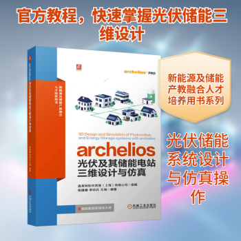 图书简介 | | 本书的主要内容是基于archelios软件的光伏-储能设计,针对我国光伏领域及基于新型电力系统的光储一体化建设需求,介绍了光伏及储能设计的基本原理和该软件的使用方法,本书提供了翔实的软件使用教程和大量的工程项目实例,图文并茂地展示了使用该软件进行光伏系统及光储一体化系统的设计过程。 |
