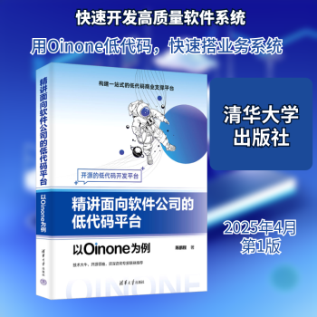 图书简介 | | 本书共7章,第1-2章可以更好地帮助读者理解设计Oinone的初衷;第2-6章重点面向研发人员,可以快速上手并做出业务系统,只要按照里面的案例一步步操作下来就可以;第7章面向非研发人员,通过使用Oinone的设计器件,无需任何研发能力就能轻松完成对系统的适用性修改,而当可视化设计器满足不了的时候。 |