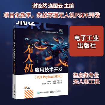 图书简介 | | 本书分为3篇,共计16个项目、19个任务,内容覆盖无人机与PSDK开发基础、PayloadSDK功能模块和PayloadSDK综合应用。第1篇共1个项目,即无人机与PSDK开发概述;第2篇共12个项目,即日志管理与电源管理、无人机信息管理、相机管理与云台管理、飞行控制与运动规划、自定义控件、时间同步与精准定位、SDK互联互通、视频流传输与回放下载、健康管理系统(HMS)、获取相机码流(liveview)、本地升级、相机实现与云台实现;第3篇共3个项目,即喊话器、空气质量检测仪、AI目标识别。 |