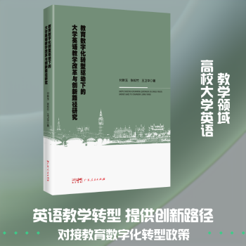 图书简介 | | 本书基于数字化与人工智能相关理论,分析教育数字化驱动下的大学英语教学模式、教学策略、教学方法、学习方式的改革,并探究教师专业化发展路径与教学评价多元化手段,最后将课程思政、生态教学、ESP教学等新视角融入其中,实现教育数字化驱动下大学英语教学的创新发展,推进信息技术与大学英语教育的深度融合。 |