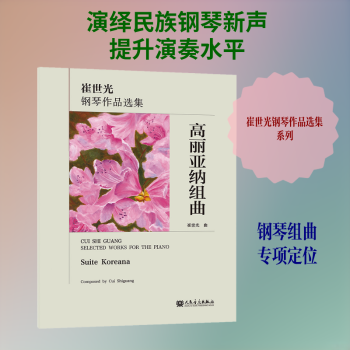 图书简介 | | 本书是著名作曲家崔世光先生创作的一部钢琴组曲,包含五首乐曲,分别题为“太平鼓”“古格里”“晋阳关”“盘瑟俚”和“长鼓舞”。作品以朝鲜族传统音乐为素材,融合西方的创作技法和具有现代风格的音乐语言,塑造出富有中国特色和时代特征的钢琴新声。 |