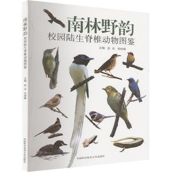 图书简介 | | 本书基于作者近8年的观察记录,共收录南京林业大学校园内陆生脊椎动物121种(两栖纲1目4科6种、爬行纲1目3科6种、鸟纲15目38科103种、哺乳纲3目4科6种)。其中,国家重点保护野生动物11种,均为国家二级重点保护鸟类;IUCN全球受胁物种1种(黑眉锦蛇,易危)。根据记录结果,逐一介绍每个物种的分类阶元、个体特征、习性、观察时间和校园分布,并配备野生动物照片和校内分布图。 |