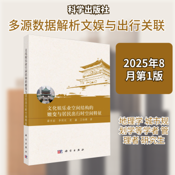 图书简介 | | 本书以西安市为例,从文化娱乐业空间结构的嬗变和居民出行时空特征两方面,研究文化娱乐业空间结构特征及其演化规律,测度文化娱乐业与城市要素的空间关联特征,揭示文化娱乐业空间结构图谱演化的发育机制。测度西安市文化娱乐业与城市居民连通的可达性格局,提取出基于可达性的文化娱乐业空间模式图谱,提出对城市居民休闲娱乐出行行为的识别和提取方法,分析其出行轨迹,从时间过程和空间分布两个方面分析居民出行行为特征。从居民休闲娱乐出行的主要时间断面和空间节点入手,基于空间约束谱聚类对居住—休闲功能空间联系格局进行探究。 |