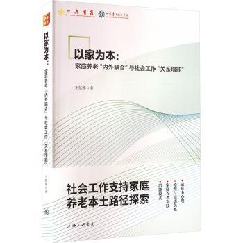 图书简介 | | 本书以田野调查的方法对河北省城乡两个社区的失能、半失能老人的家庭养老案例进行了全面深入考察,将研究重点放在家庭养老实践与家庭伦理观念的相互作用方面,基于“以家为本”的伦理观念基础,提出了“内外耦合”的概念,力图对中国家庭养老的实践特征进行总体概括。在此基础上,本书对社会工作在养老中的作用展开分析,提出的“关系增能”理论具有较强的现实意义和理论价值,对社会工作者的实践具有启发性。 |