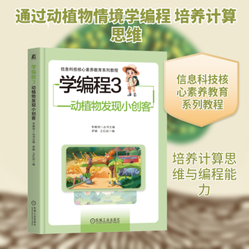图书简介 | | 本书选取10个有趣的与动植物有关的情境,基于图形化编程平台,让孩子通过“拖曳编程积木”创造属于自己的数字世界。通过逐步进阶的编程逻辑、沉浸式的互动编程体验,让孩子体会观察—抽象—编程—反思这一逻辑思维的形成过程,从而掌握基础的编程概念和方法,拓展信息科技知识,培养严谨认真的态度,锻炼计算思维,提升创新意识与解决问题的能力。 |