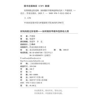图书简介 | 本书围绕“如何做好早教和选择幼儿园”这一主题展开,共分四个章节。第一部分首先从启蒙教育入手,指出启蒙教育应该做什么以及怎么做;第二部分从提高爱的质量的角度入手,指出父母在对待孩子成长中的细节处理的重要性;第三部分是以养育为主题,探讨了母乳、婴儿车以及隔代养育等话题;第四部分为如何选择合适的幼儿园,从幼儿园的老师选择、吃饭自由等方面入手,并且给家长一些帮助孩子适应幼儿园的建议。 |