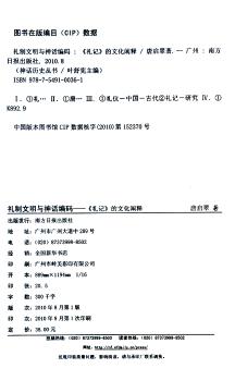 图书简介 | | 本书内容包括:冠礼仪式象征探源 “廟”的象征分析、《礼记·明堂位》空间叙事、《礼记》“五方之民”叙事研究、《礼记·月令》的神话时空观等。 |