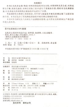 图书简介 | | 本书以无机非金属(陶瓷)材料的制备技术为主线,对原材料及其合成、胚体成形与干燥、致密化烧结、材料后续加工技术进行了系统地介绍,同时对无机薄膜制备,以及其他无机材料热点制备技术也进行了介绍。 |