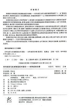 图书简介 | | 本书共分为铸造成形技术;塑性成形技术;焊接成形技术;材料的其他成形技术;材料成形技术的选择等5篇共22章。 |