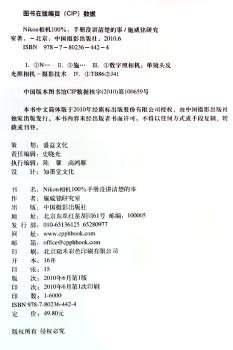 图书简介 | | 本书讲解了主流尼康数码单反相机说明书中没有讲解清楚的操作及菜单设定技巧。将相机操控与实际拍摄相结合,让读者直观地看到不同的设置所产生的不同效果。 |