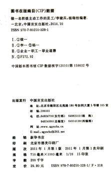 图书简介 | | 本书主要内容包括:积极主动,所有卓越员工的成功秘诀、主动服从,没有任何借口、主动负责,坚守自己的职责和使命、主动付出,每天多做一点点等。 |